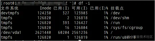 执行如下命令,以inode模式来显示磁盘使用情况。