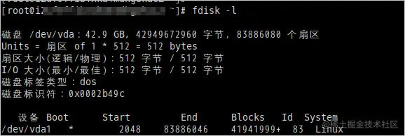 b. 执行如下命令,对磁盘/dev/vda进行分区操作。
