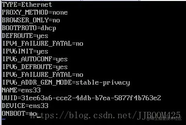在命令行中输入 cat /etc/sysconfig/network-scripts/ifcfg-ens33 可以看到如下信息。