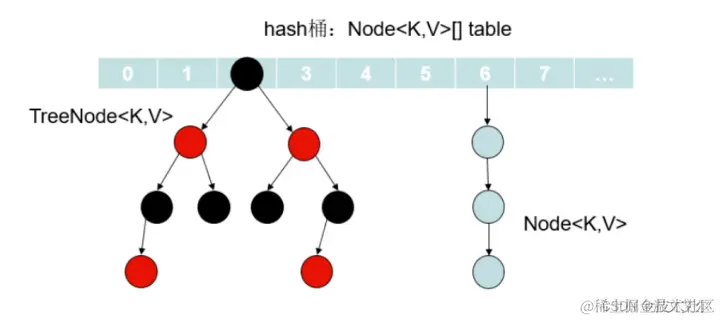当他们边的太小(由于删除或调整大小)时,就会被转换回普通的桶,在使用分布良好的hashcode时,很少使用树箱。