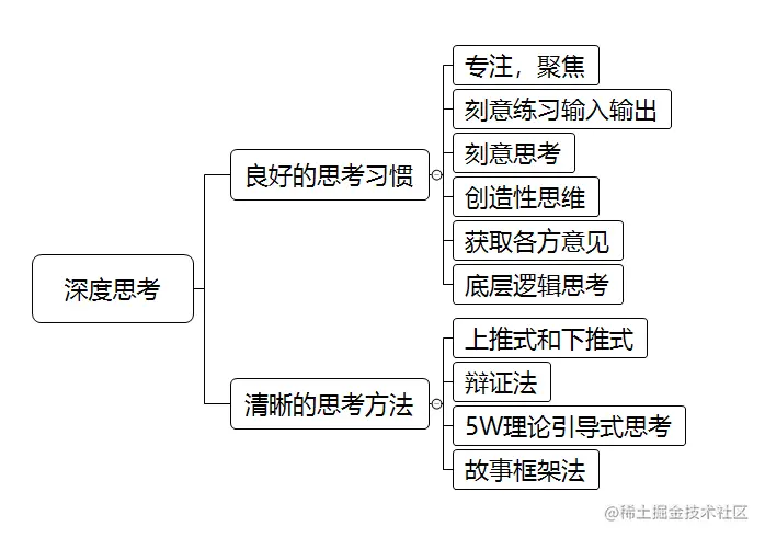 总结: 首先我们需要专注,聚焦,其次需要明确问题输入输出,量化,最后需要从底层逻辑思考,刻意思考,获取意见及改进,最后有创造性思维。