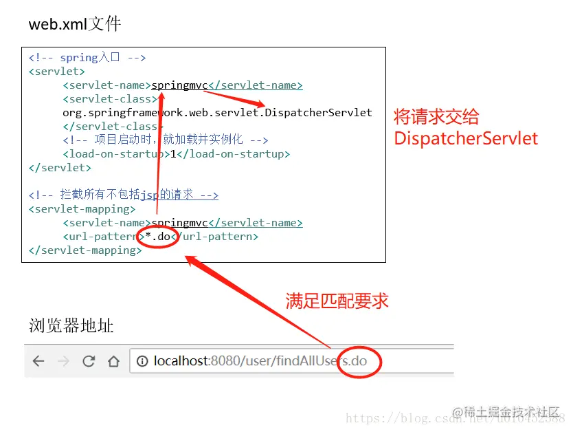 第1步:浏览器发送指定的请求都会交给DispatcherServlet,他会委托其他模块进行真正的业务和数据处理