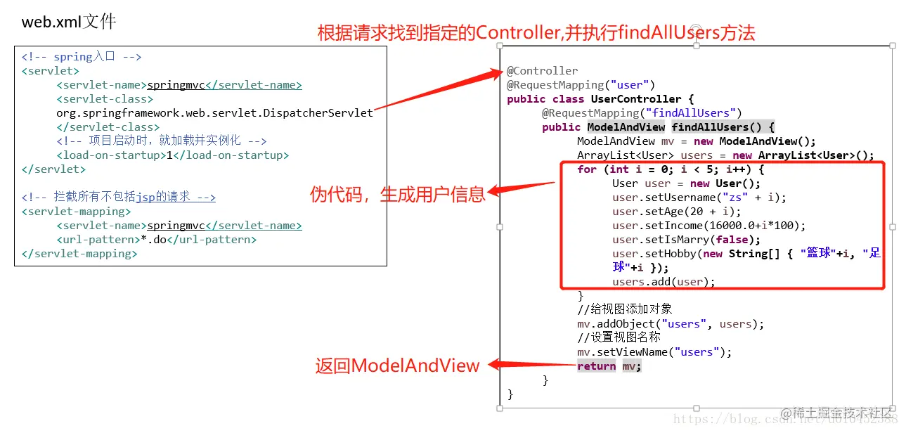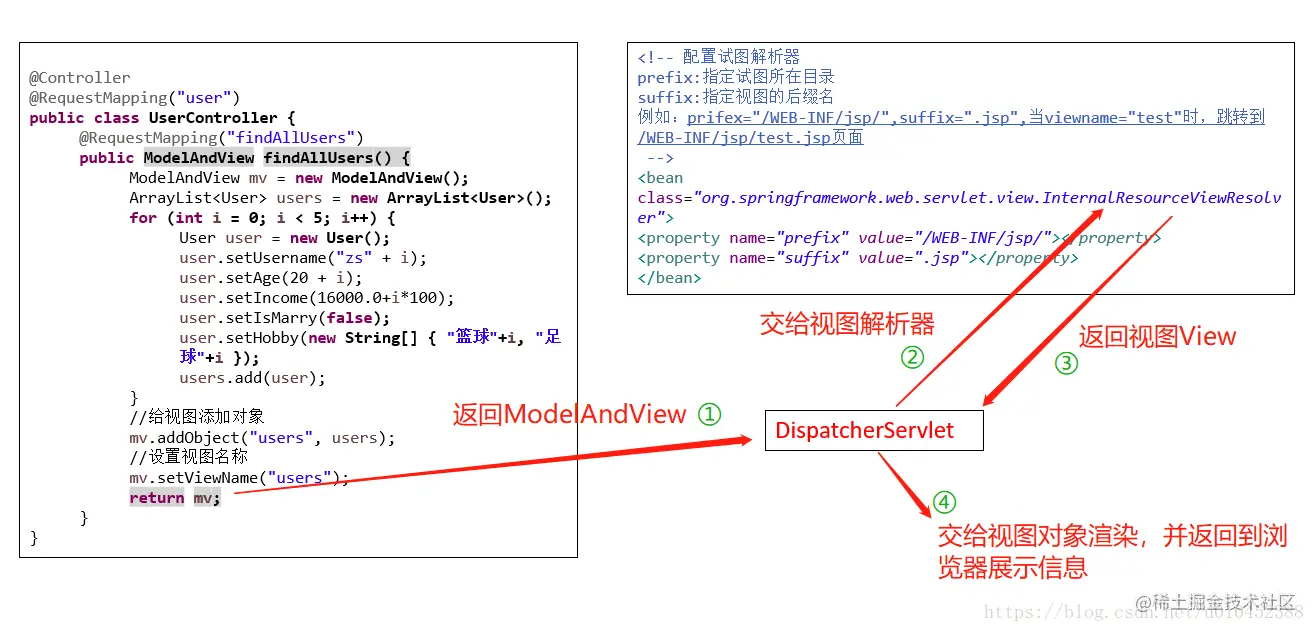 第3步:目标Controller处理完业务后,返回一个ModelAndView给DispatcherServlet