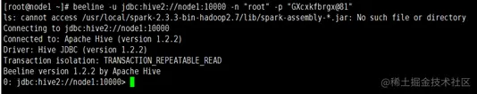 beeline -u jdbc:hive2://node1:10000 -n "用户名" -p "密码"