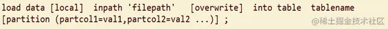 注意:分区表在加载数据的过程中要指定分区字段,否则会报错,正确的加载方式如下: