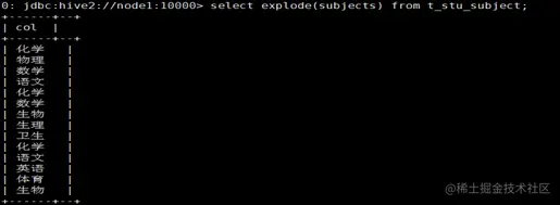 (select explode(subjects) as sub from t_stu_subject) tmp;