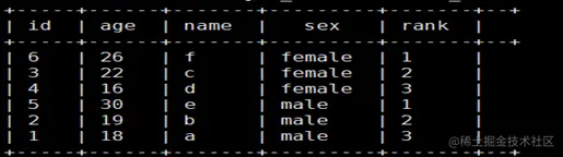 实际操作: 使用 row_number 函数,对表中的数据按照性别分组,按照年龄倒序排序并进行标记