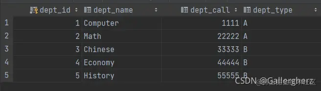 上实例:假设有两张表,表一为学生信息表,名称为tb_student_info。我们关注的是dept_id(学院编号)。