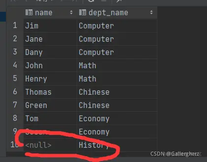 没有id = 7的学生信息,因为我们查找条件是 tb_student_info.dept_id = tb_departments.dept_id;