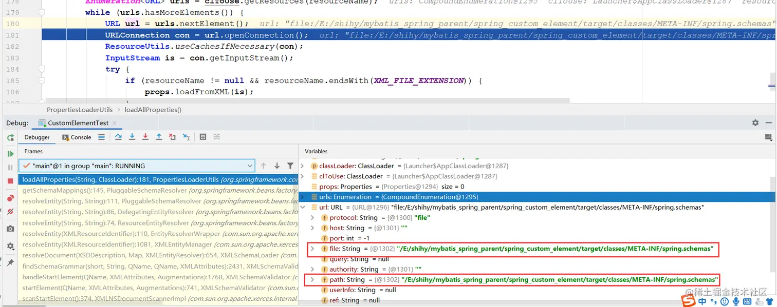 借助了工具类PropertiesLoaderUtils对属性handlerMappingsLocation进行了配置文件的读取,handlerMappingsLocation被默认初始化为“META-INF/Spring.handlers”。