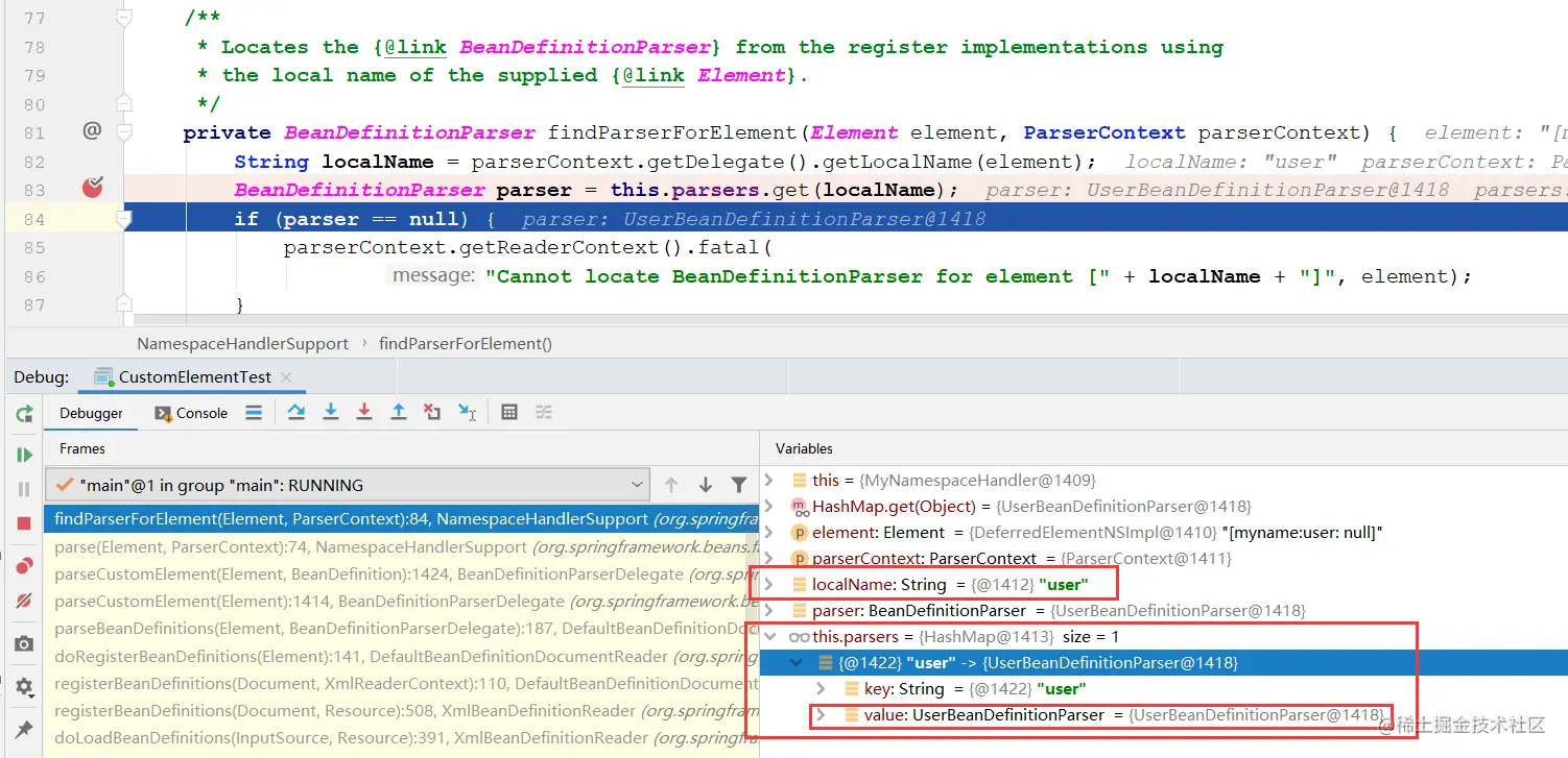 //registerBeanDefinitionParser("user", new UserBeanDefinitionParser());注册的解析器