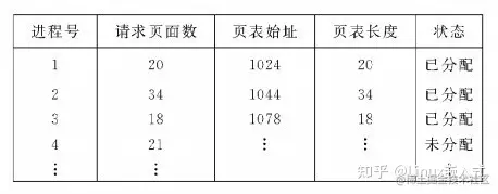 请求表:整个系统有一个请求表,描述系统内各个进程页表的位置和大小,用于地址转换也可以结合到各进程的PCB(进程控制块)里。如图: