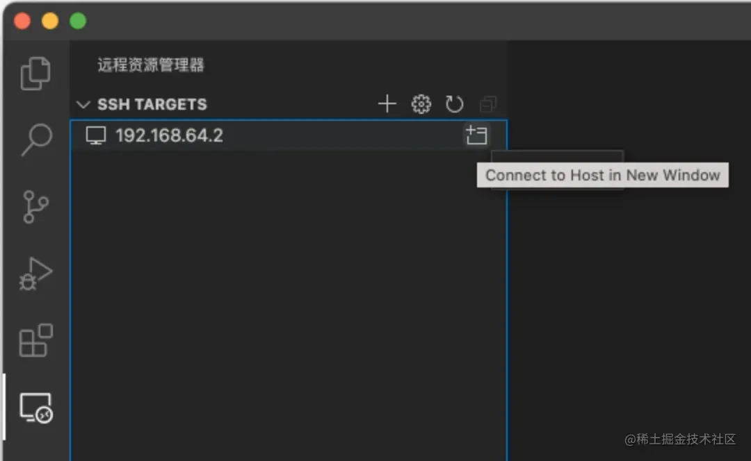 远程资源管理器的连接列表中,点击Connect to Host in New Window