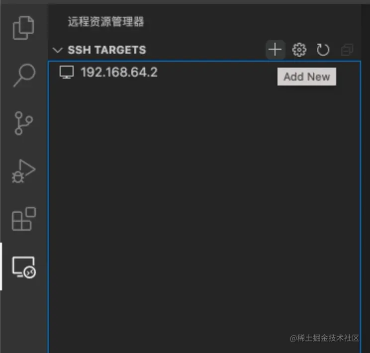 远程资源管理器标签,点击Add New按钮