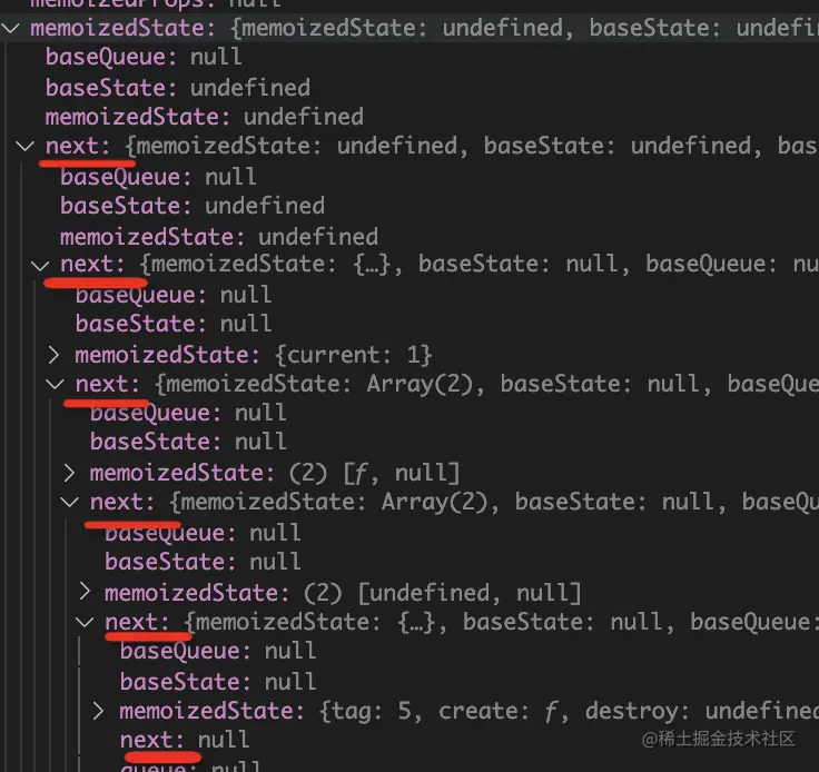 它是从 firstWorkInProgressHook 开始的用 next 串联的一个链表。