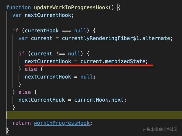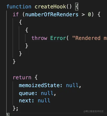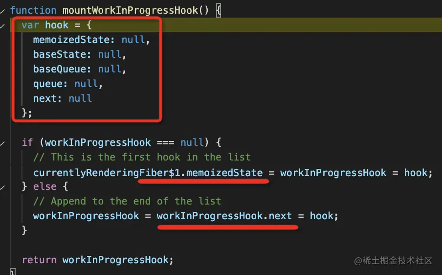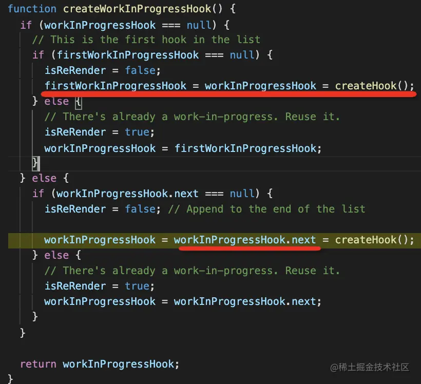 而 firstWorkInProgressHook 最开始用 createHook 创建的第一个 hook 节点: