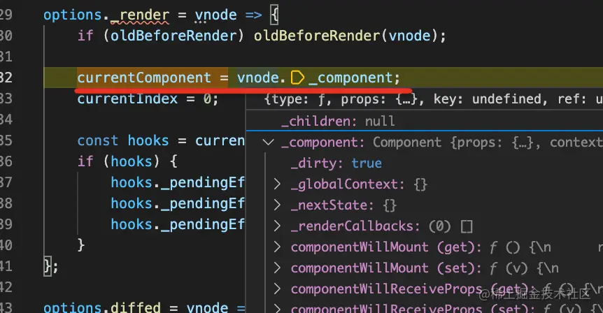 也就是把 hooks 的值存在了 vnode._component._hooks 的数组上。