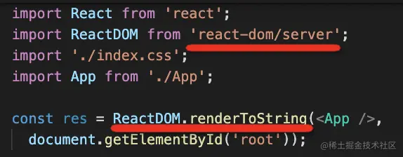 ssr 的时候使用 react-dom/server 的 renderToString 方法或 renderToStream 方法: