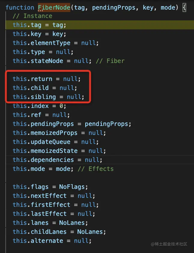 所以 React 才引入了这种 fiber 的结构,也就是有父节点 return、子节点 child、兄弟节点 sibling 等引用,可以打断,因为断了再恢复也能找到后面所有没处理过的节点。