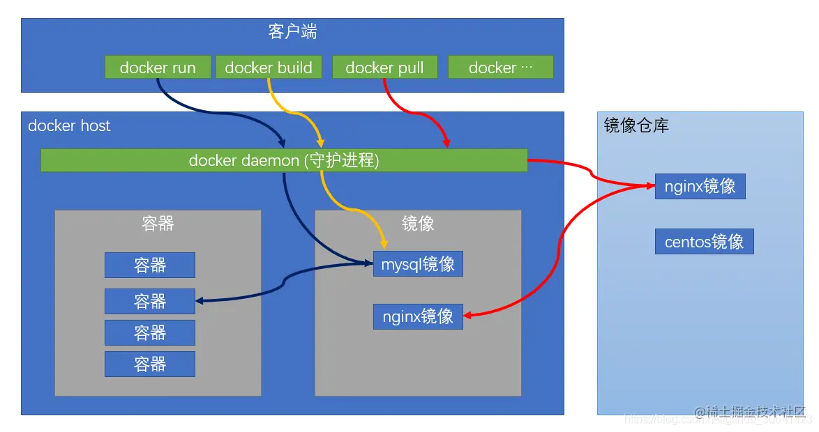 docker客户端:docker客户端是用户与docker服务交互的窗口,就是我们在命令行用docker 命令