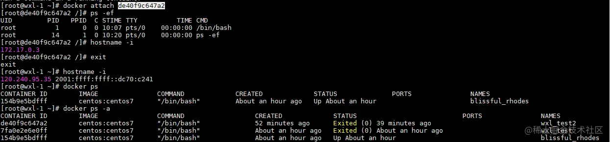 docker run -itd --name wxl_test2 centos:centos7 /bin/bash