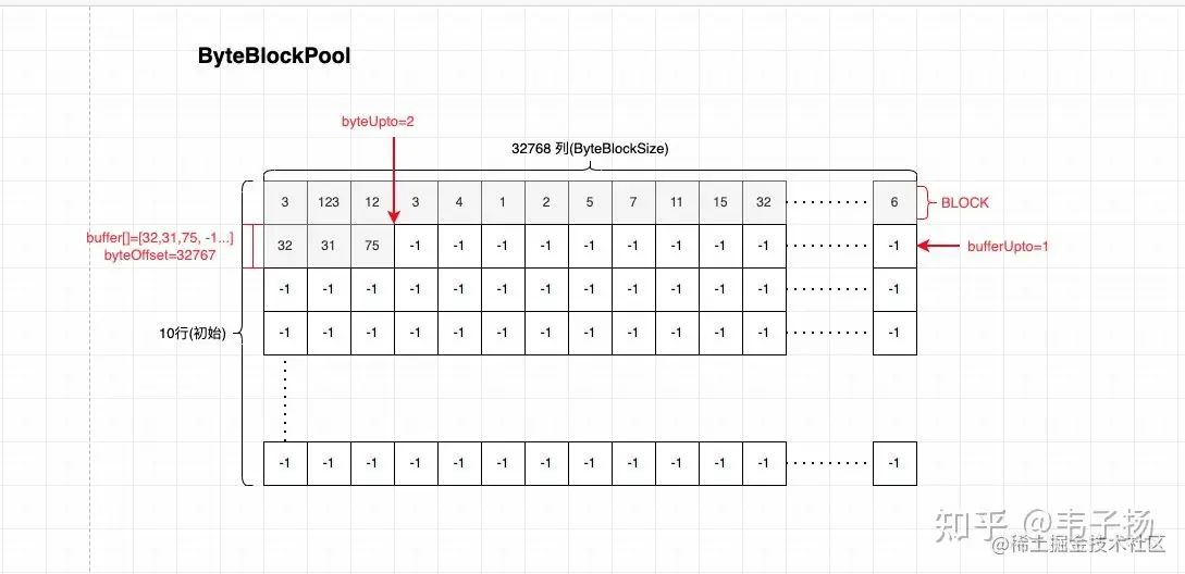 接下来对着这幅图来理解一下这个ByteBlockPool: