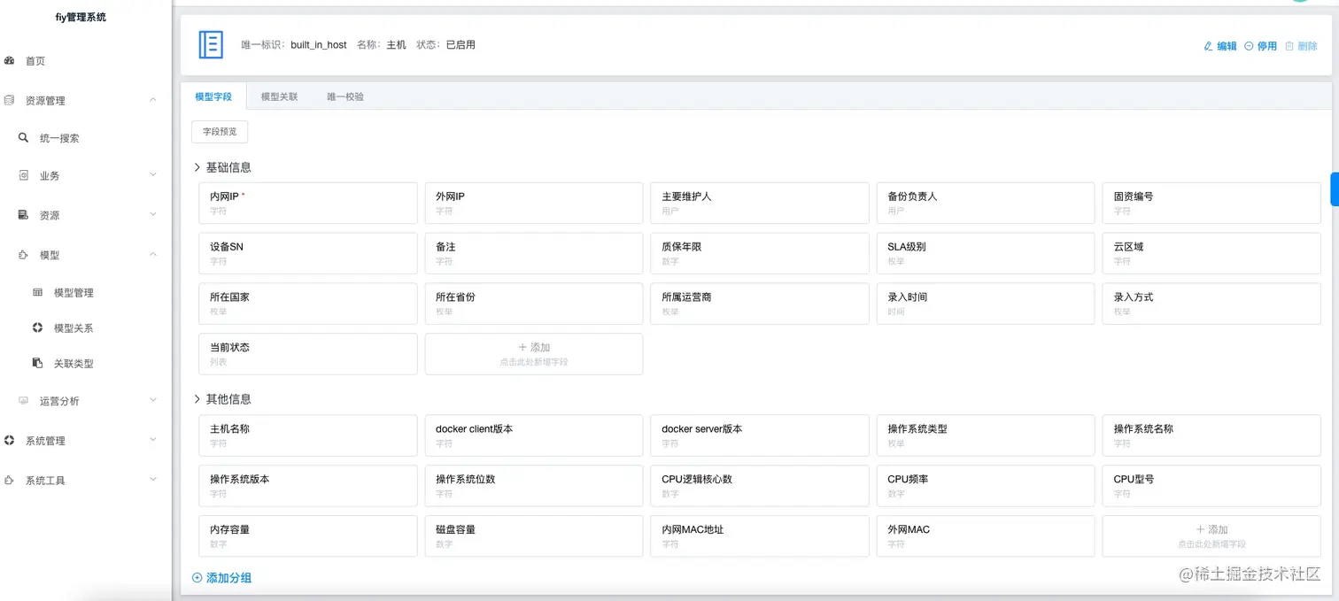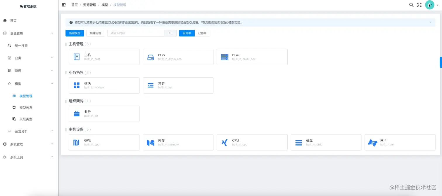 模型管理,即通过模型及配置的模型字段,添加对应的数据。能更加灵活的让我们管理我们的资源,需要什么资源就创建对应的模型即可。