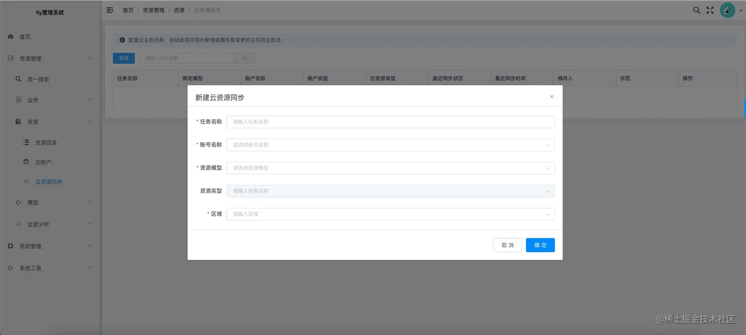 配置云资源同步的任务。