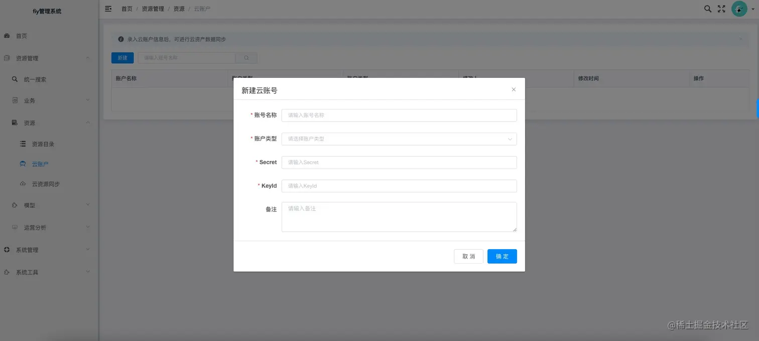 云账号添加,方便进行云资源的同步,目前支持百度云、阿里云、腾讯云。