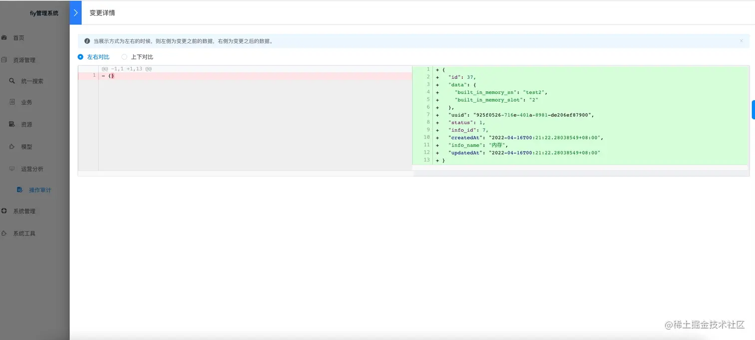 本次操作的新旧数据对比