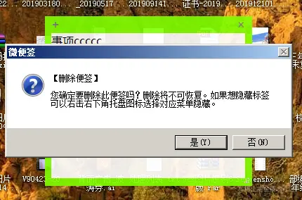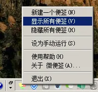 注意了右上角的x是表示删除便签,而不是关闭,要隐藏的话点击托盘菜单里的项隐藏。