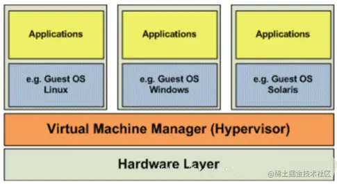 虚拟机的监视器(hypervisor)是类似于用户的应用程序运行在主机的OS之上,如VMware的workstation,这种虚拟化产品提供了虚拟的硬件。