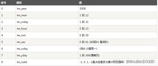 说明:time.struct_time(tm_year=2014, tm_mon=3, tm_mday=21, tm_hour=15, tm_min=13, tm_sec=56, tm_wday=4, tm_yday=80, tm_isdst=0)属于struct_time元组,struct_time元组具有如下属性: