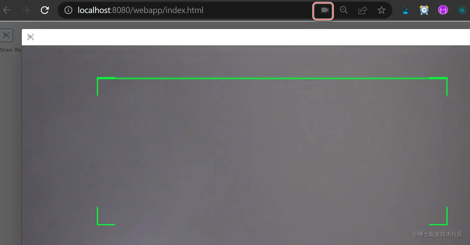 选择允许之后,浏览器右上角会出现一个摄像头图标,提示用户,当前应用正在使用本机的摄像头。