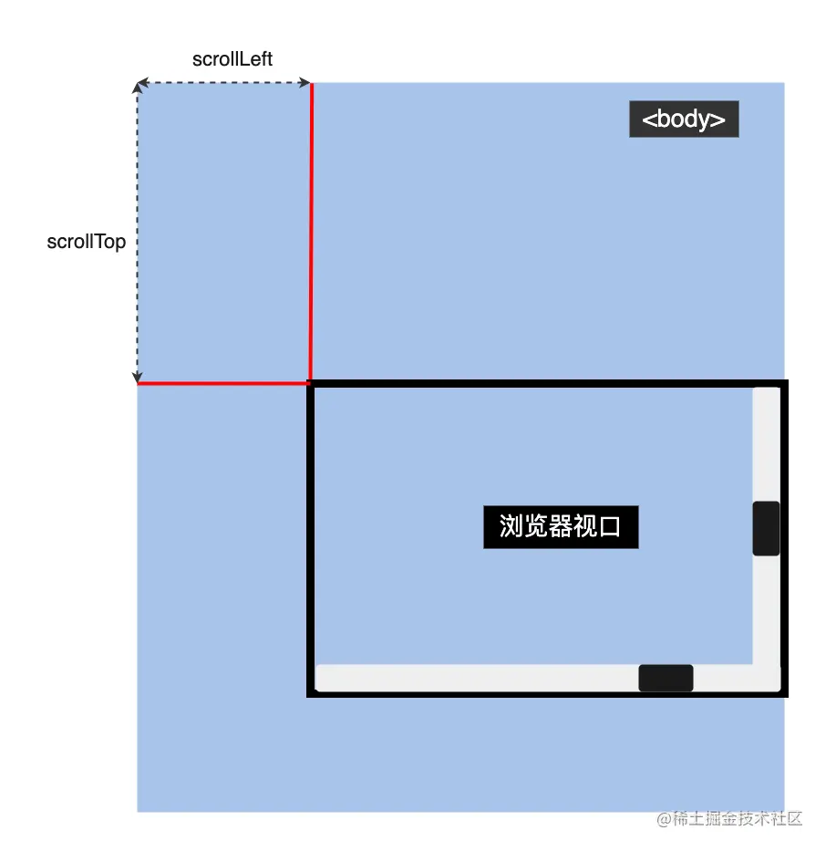 Element.scrollLeft 属性返回元素滚动条到元素左边的距离,Element.scrollTop 属性返回元素滚动条到元素顶部的距离。