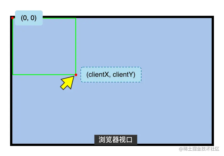 event.clientX / event.clientY 返回鼠标触发点相对于浏览器视口的坐标,不随页面滚动而改变。