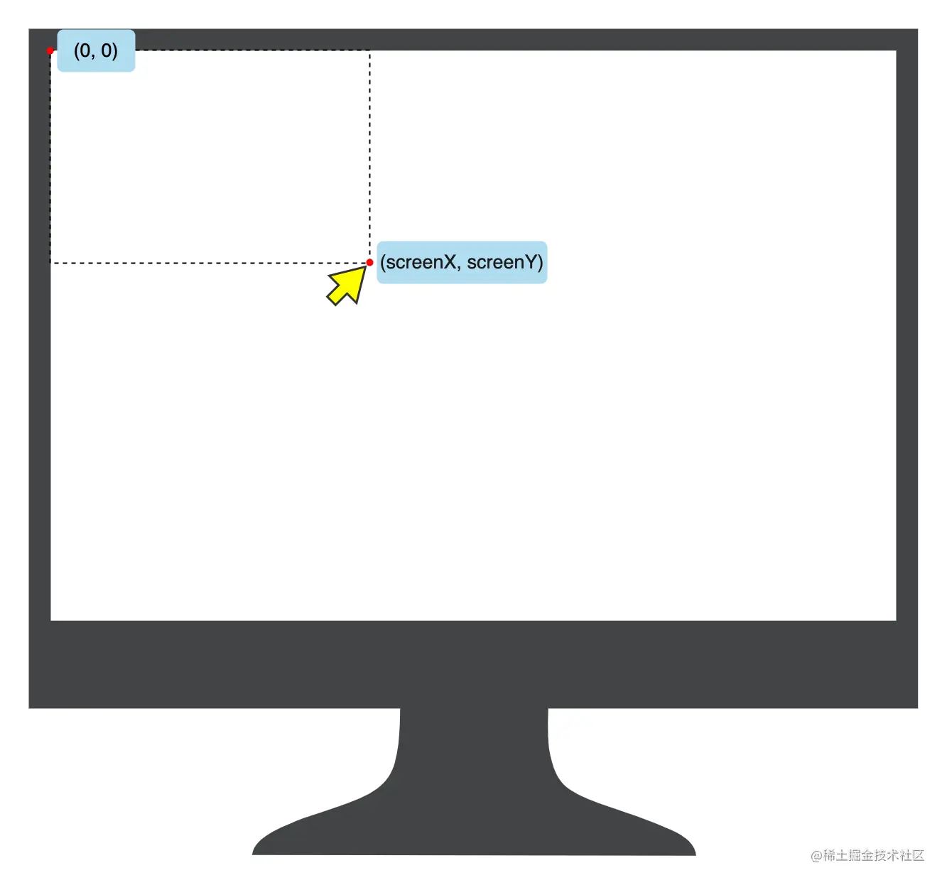 event.screenX / event.screenY返回鼠标当前所处的位置相对于设备屏幕的坐标(x,y)。不会随页面滚动而改变。