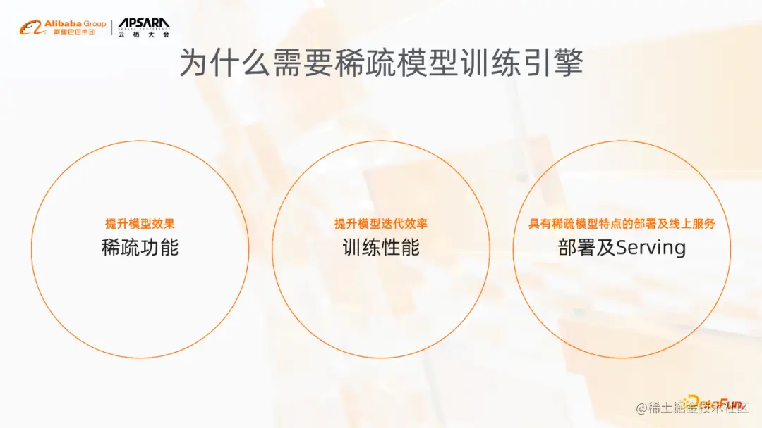 首先是DeepRec的背景,做搜索推广的同学肯定感同身受,流行的Tensorflow、PyTorch等,其实有很多痛点,这些痛点也就是我们为什么需要做稀疏模型的训练引擎,我们这边总结了主要分为三个方面:
