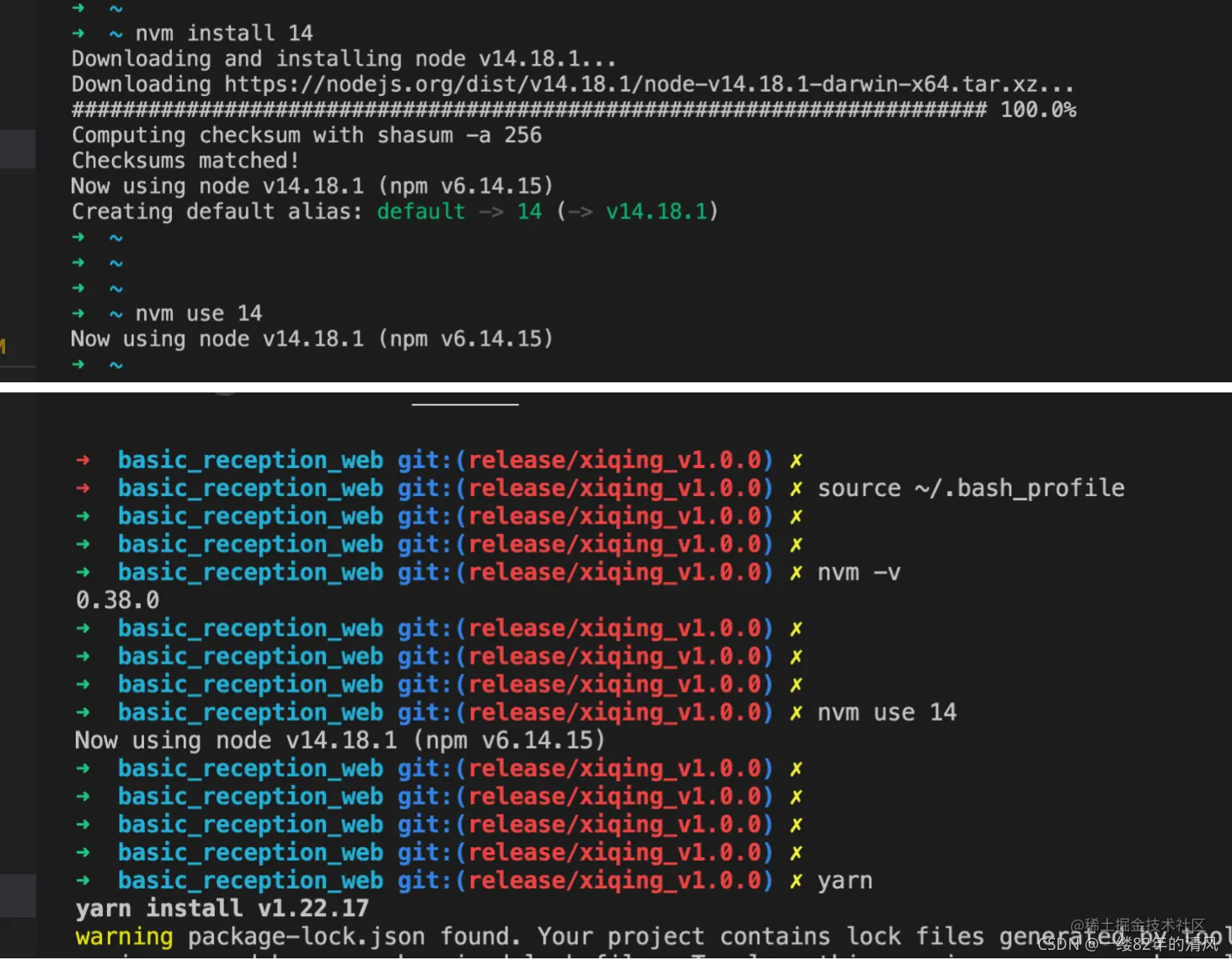 如果使用过程中,又出现 nvm command not found,重新执行如下命令: