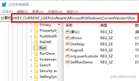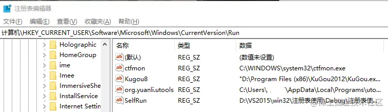 如何查看是否设置开机自启了呢,win+R,输入命令regedit,找到路径:计算机\HKEY_CURRENT_USER\Software\Microsoft\Windows\CurrentVersion\Run
