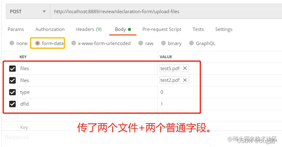 然后我们来通过postman来测试下该接口,看看是否能拿到该参数信息,包括文件。