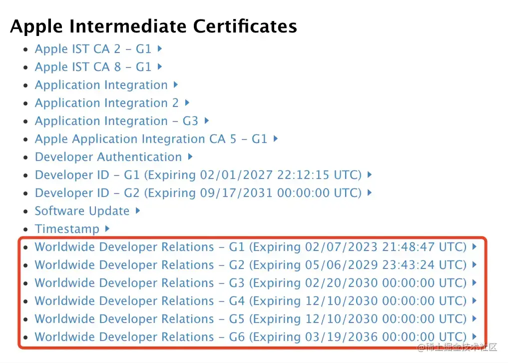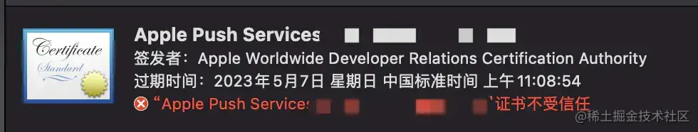 - 如果出现开发证书不受信任,说明开发设备中 Apple Worldwide Developer Relations Certification Authority证书被删除了 或者 已安装的WWDRCA失效了。