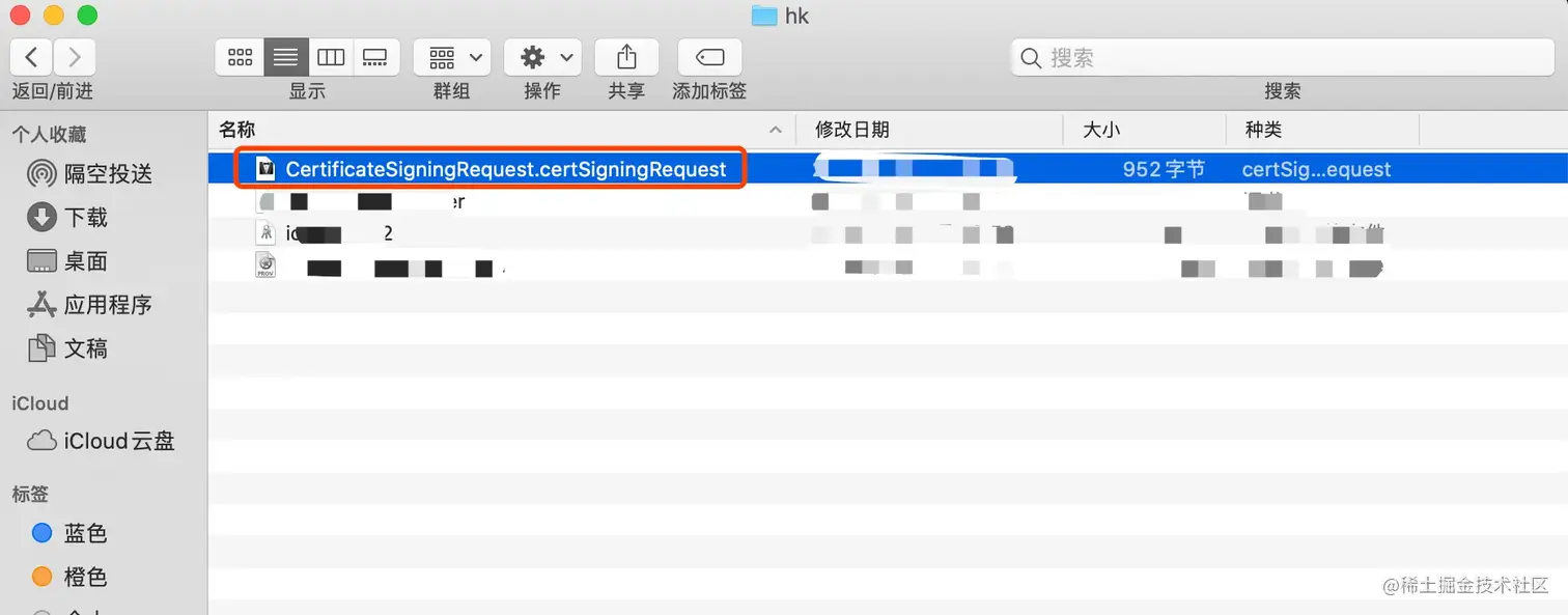 - 在保存位置可看到 生成的请求证书(CertificateSigningRequest.certSigningRequest)。