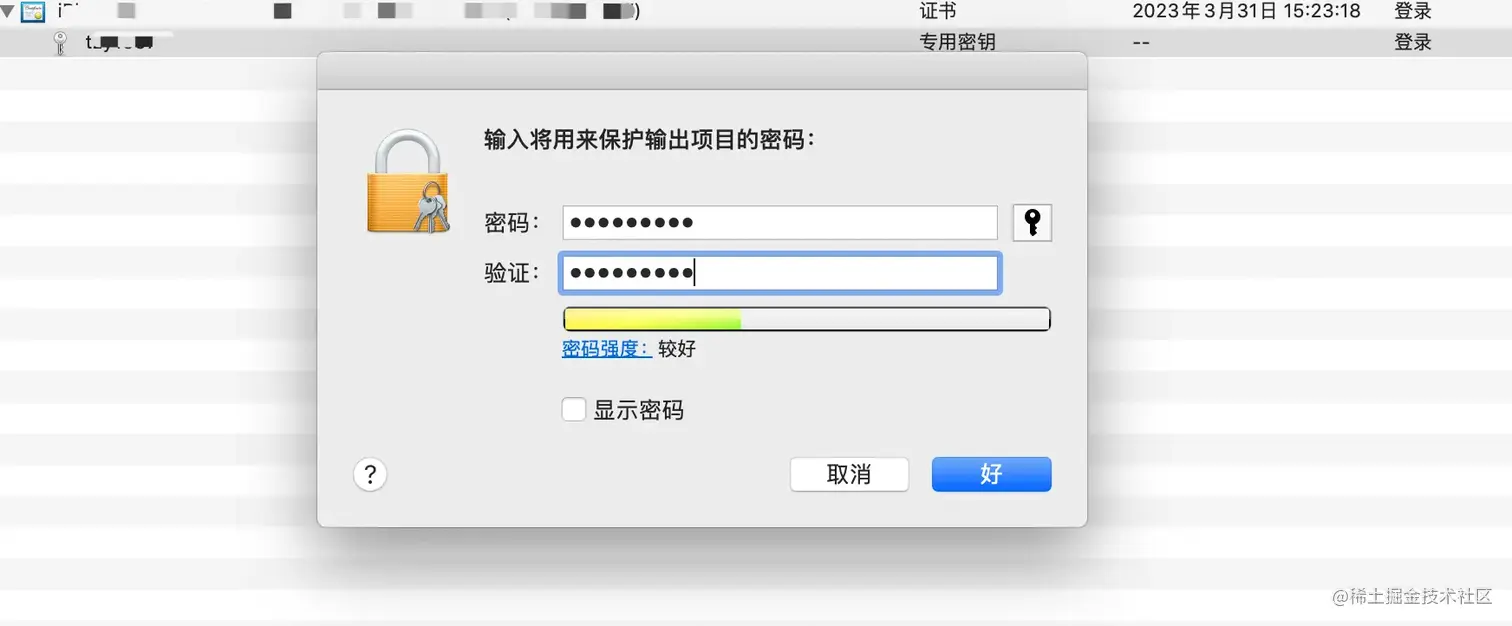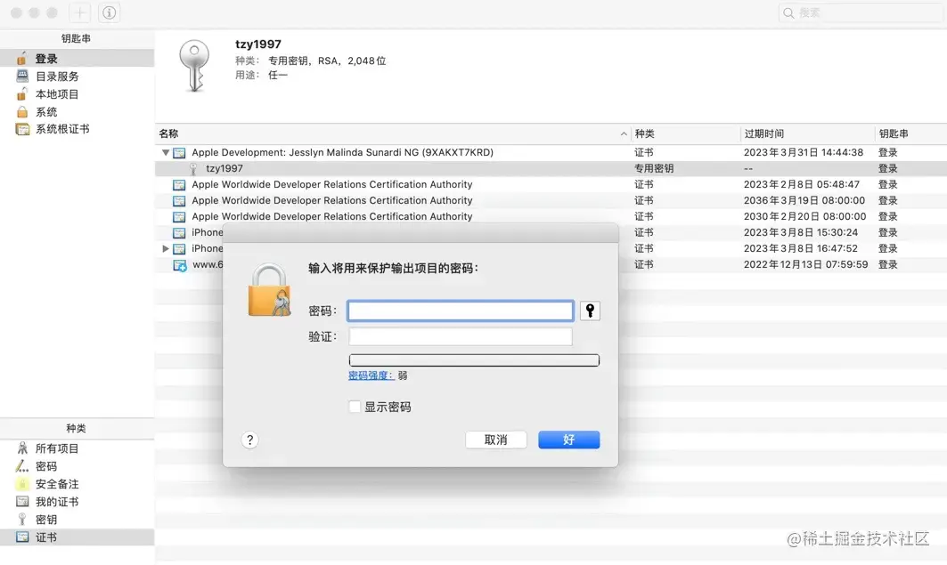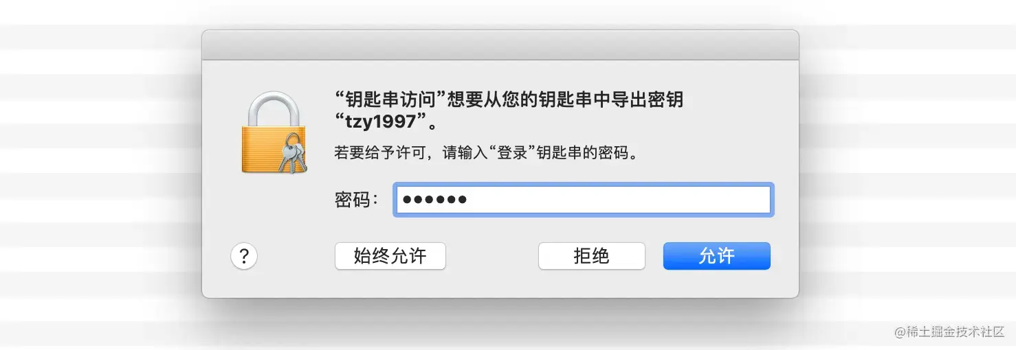 - 如果弹出需要登录钥匙串的密码,输入当前设备账户密码即可。