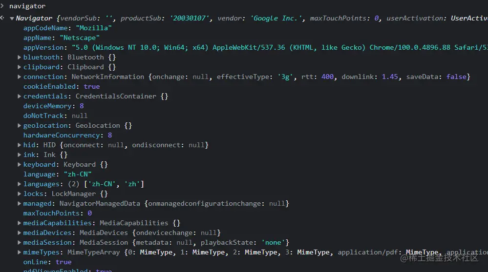 可以把他理解为浏览器系统信息大集合