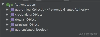 //获取权限列表 authentication类中有List<GrantedAuthority> authorities属性