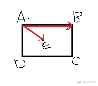 如果E点在ABCD这个矩形内部, 那么AB和AE的夹角取值范围在0度到90度范围内;