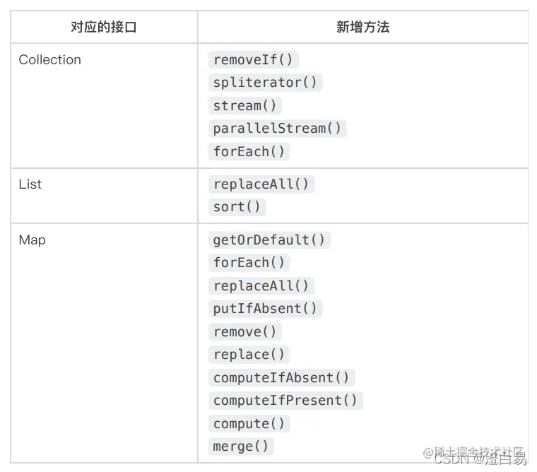 Lambda 表达式最有价值的作⽤就是可以配合集合⼀块使⽤。Lambda 可以配合使⽤的⽅法列表如下: