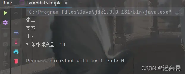 有了函数式接口之后,我们就可以使用 lambda 表达式对其实例化了,实现代码如下: