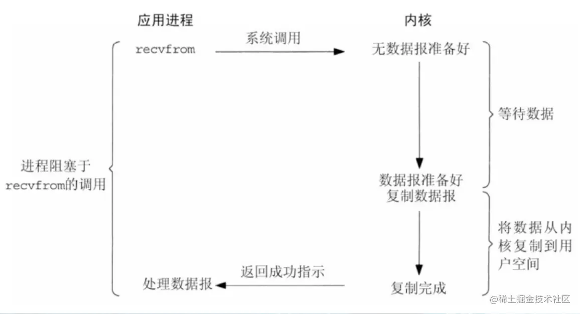 阻塞IO,指的是需要内核IO操作彻底完成后,才返回到用户空间执行用户的操作。阻塞指的是用户空间程序的执行状态。传统的IO模型都是同步阻塞IO。